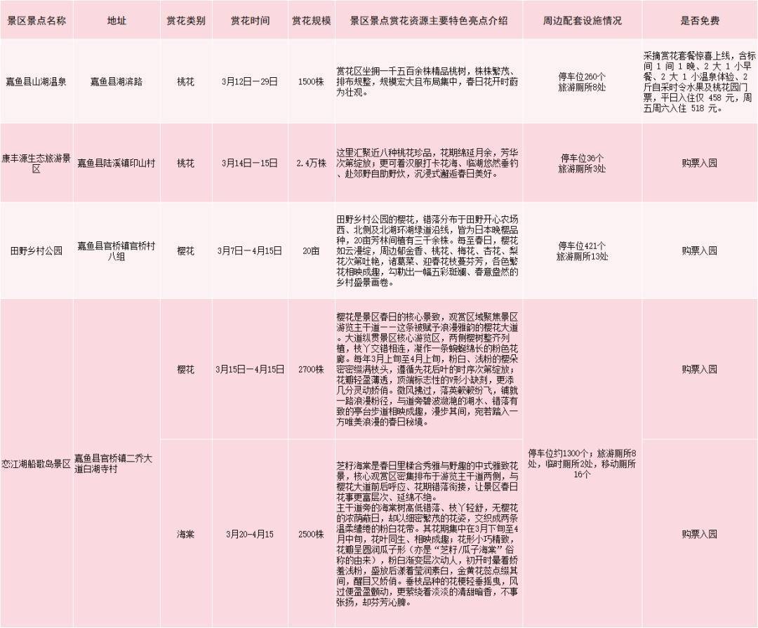 嘉鱼县赏花游景区景点一览表(点击图片放大查看)