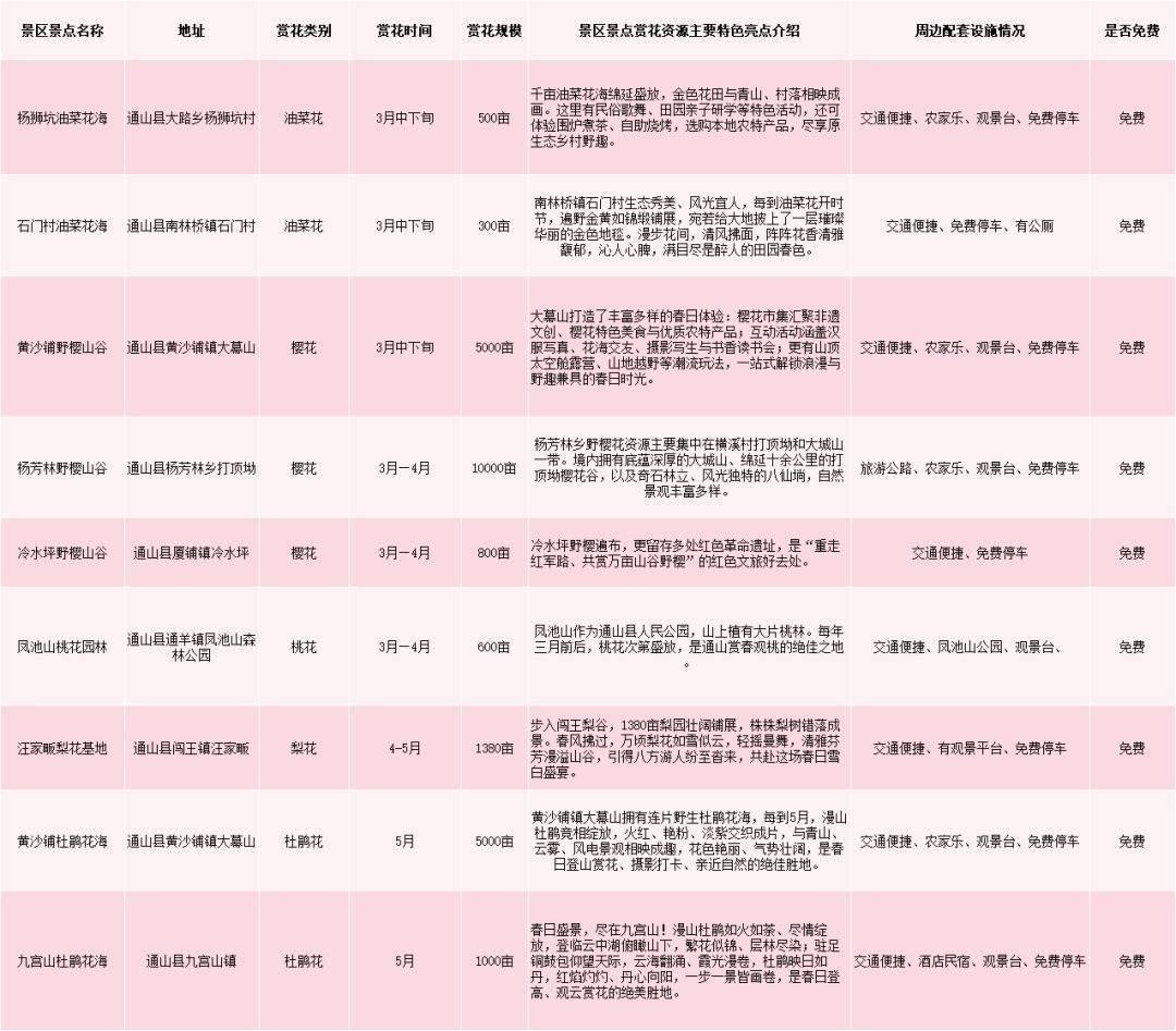 通山县赏花游景区景点一览表(点击图片放大查看)