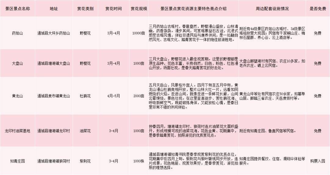通城县赏花游景区景点一览表(点击图片放大查看)