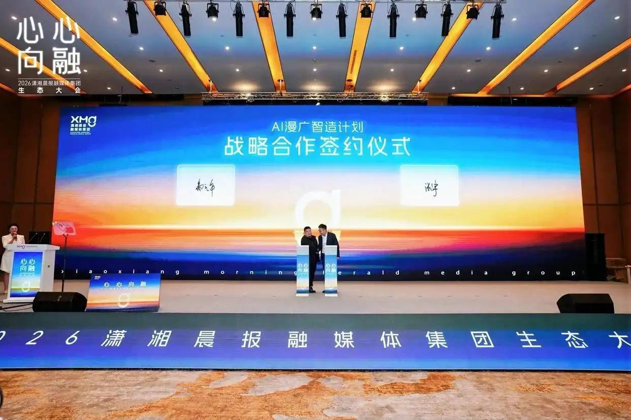 AI将如何引领媒体内容生产力革命?3月16日,心心向融——2026潇湘晨报融媒体集团生态大会在长沙举行。会上,潇湘晨报融媒体集团与上海智灵新境科技有限公司举行AI漫广智造计划签约,双方将联动长沙、武汉、上海三城地铁场景与千万级传播矩阵,在长沙共建AI漫广孵化中心,构建“AI创作+全域分发”商业闭环,为融媒体内容生产开辟全新赛道。