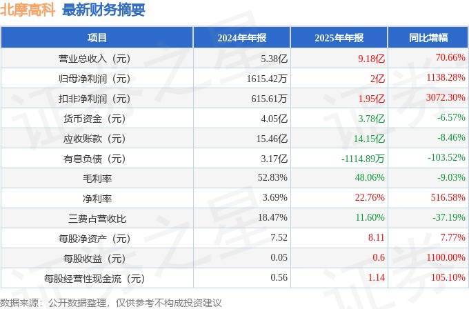 据证券之星公开数据整理,近期北摩高科(002985)发布2025年年报。截至本报告期末,公司营业总收入9.18亿元证券配资的条件,同比上升70.66%,归母净利润2.0亿元,同比上升1138.28%。按单季度数据看,第四季度营业总收入2.68亿元,同比上升389.21%,第四季度归母净利润7249.28万元,同比上升208.04%。本报告期北摩高科公司应收账款体量较大,当期应收账款占最新年报归母净利润比达707.57%。