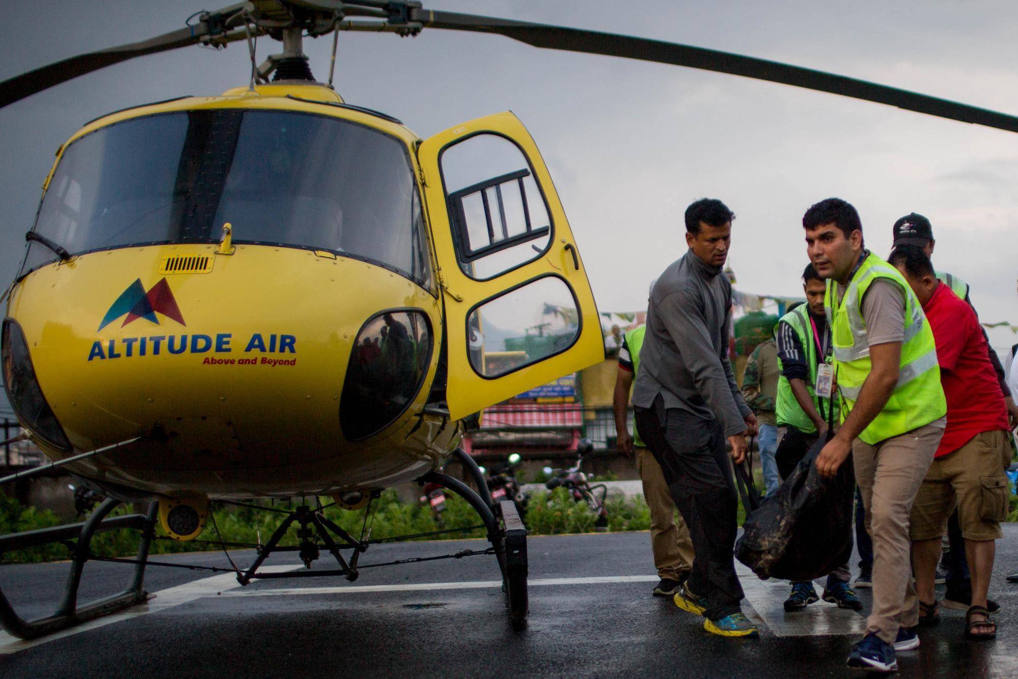 2023年7月11日,载有坠机事件遇难者遗体的直升机抵达尼泊尔加德满都。新华社发(苏拉韦·什雷斯塔摄)尼泊尔地处喜马拉雅山脉南麓,每年吸引大量登山客。由于尼泊尔境内许多登山线路位于偏远高海拔地带,一旦出现紧急情况需要直升机转运,费用往往十分高昂。